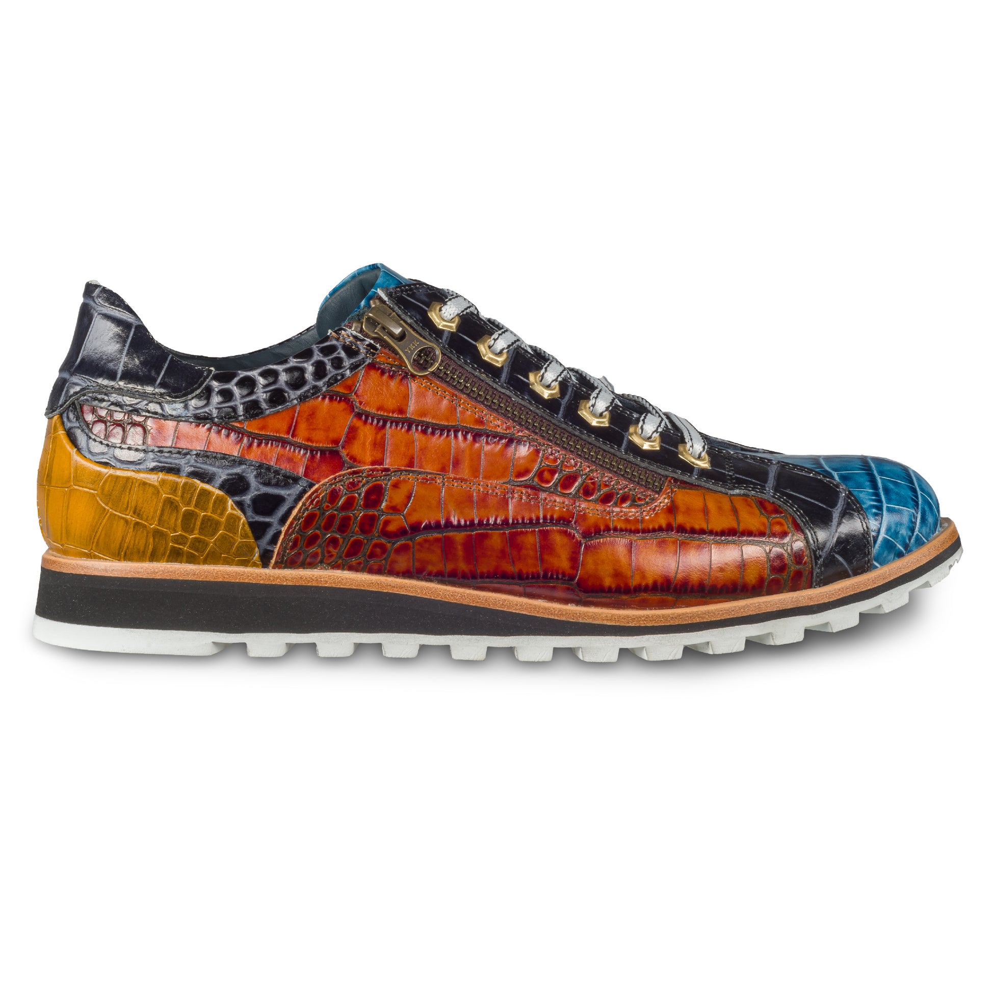 LORENZI Sneaker Herren blau/braun/schwarz - Kalbsleder mit Krokoprägung, Reißverschluß, handgefertigt